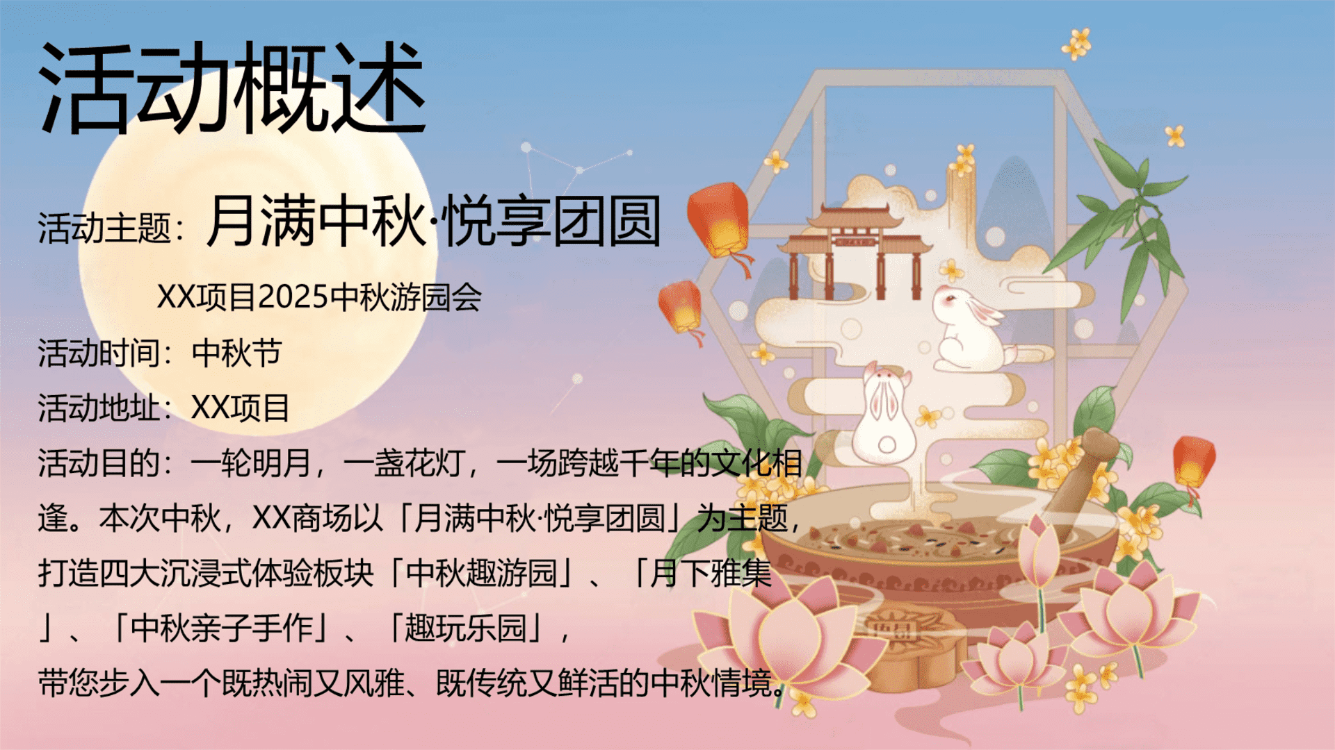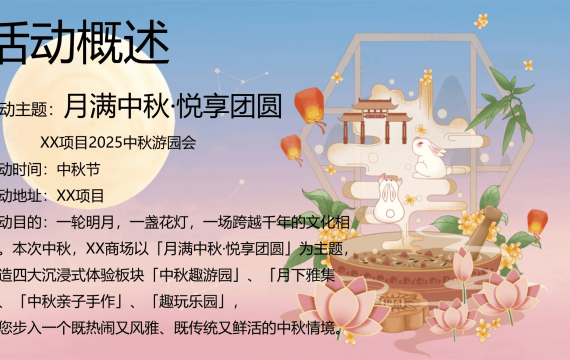 2025地产项目中秋节游园会“月满中秋·悦享团圆”主题活动策划方案 2025-08-29 地产 8.24w 非VIP用户仅限浏览12张,共40张登录 资源下载此资源下载价格为5元,VIP免费,请先登录 资源下载下载价格5 元VIP免费请先登录 0 0 fanganku.cn方案库活动节庆