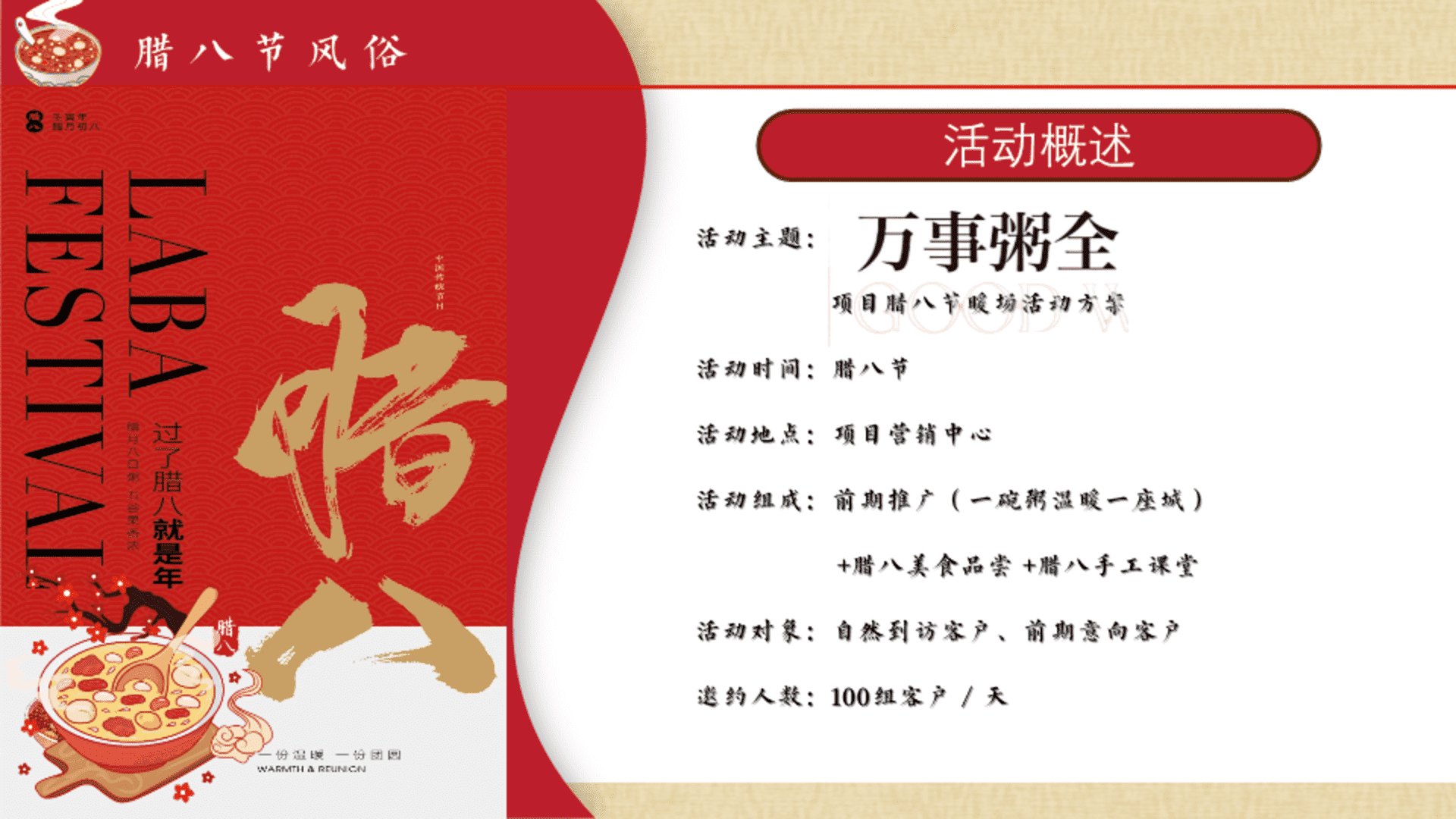 2026腊八节美食手工品粥暖场活动方案 2026-01-02 地产 8.23w 非VIP用户仅限浏览12张,共29张登录 资源下载此资源下载价格为5元,VIP免费,请先登录 资源下载下载价格5 元VIP免费请先登录 0 0 fanganku.cn方案库活动线下节庆