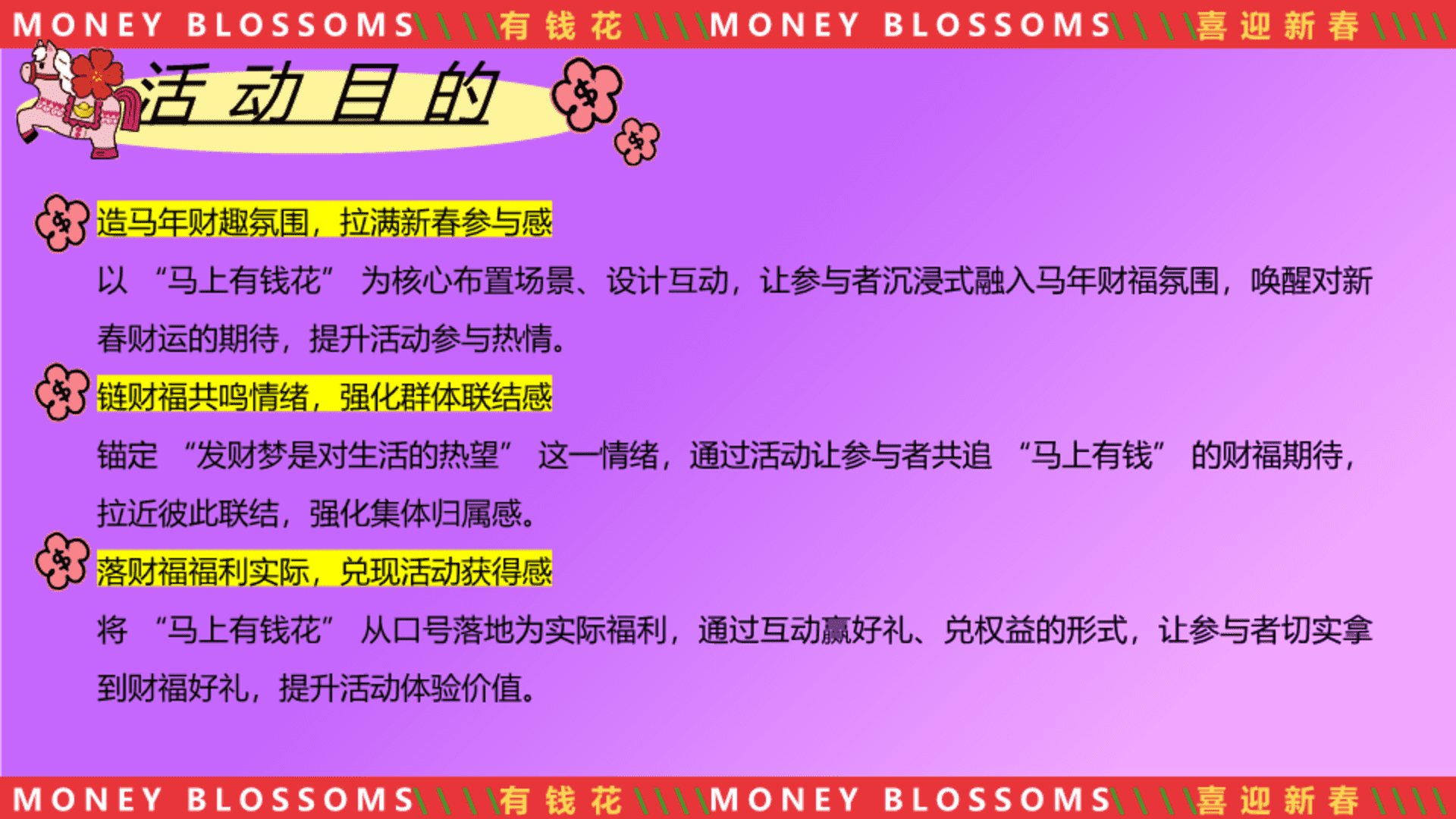2026“马上有钱花 马年聚财欢”地产嘉年华游园会活动策划方案 2026-01-04 地产 8.15w 非VIP用户仅限浏览12张,共56张登录 资源下载此资源下载价格为5元,VIP免费,请先登录 资源下载下载价格5 元VIP免费请先登录 0 0 fanganku.cn方案库节庆