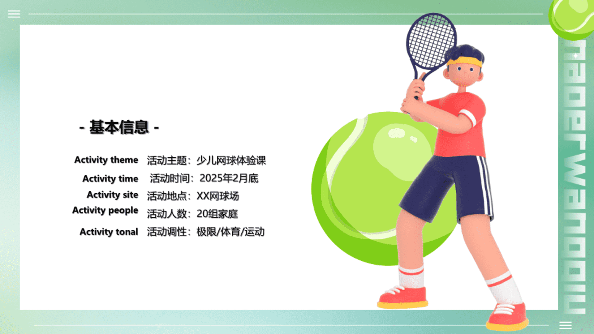 少儿网球亲子体验课活动策划方案 2026-01-18 教育 8.17w 非VIP用户仅限浏览12张,共30张登录 资源下载此资源下载价格为5元,VIP免费,请先登录 资源下载下载价格5 元VIP免费请先登录 0 0 fanganku.cn方案库活动