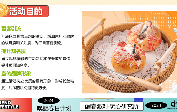 2024漫步面包节来了-元旦面包厨房酵醒互动亲子面包市集酵醒美食活动策划方案 2024-12-01 ①快消品 8.24w 非VIP用户仅限浏览12张,共52张登录 资源下载此资源下载价格为5元,VIP免费,请先登录 资源下载下载价格5 元VIP免费请先登录 0 0 fanganku.cn方案库活动节庆