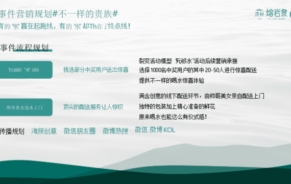 熔岩泉矿泉水品牌整合营销推广方案 2026-01-10 ①快消品 8.2w 非VIP用户仅限浏览12张,共81张登录 资源下载此资源下载价格为5元,VIP免费,请先登录 资源下载下载价格5 元VIP免费请先登录 0 0 fanganku.cn品牌整合营销方案库