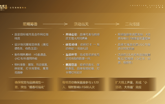 2026香烟品牌春季咖路里咖啡主题消费圈层活动方案 2026-03-25 ①快消品 8.54w 非VIP用户仅限浏览12张,共50张登录 资源下载此资源下载价格为5元,VIP免费,请先登录 资源下载下载价格5 元VIP免费请先登录 0 0 fanganku.cn方案库活动线下