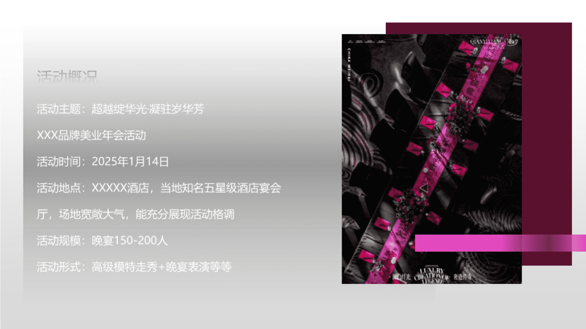 2025美业公司年会盛典“超越绽华光·凝驻岁华芳”活动策划方案 2025-12-24 ②美妆护肤 8.57w 非VIP用户仅限浏览12张,共44张登录 资源下载此资源下载价格为5元,VIP免费,请先登录 资源下载下载价格5 元VIP免费请先登录 0 0 fanganku.cn方案库活动节庆