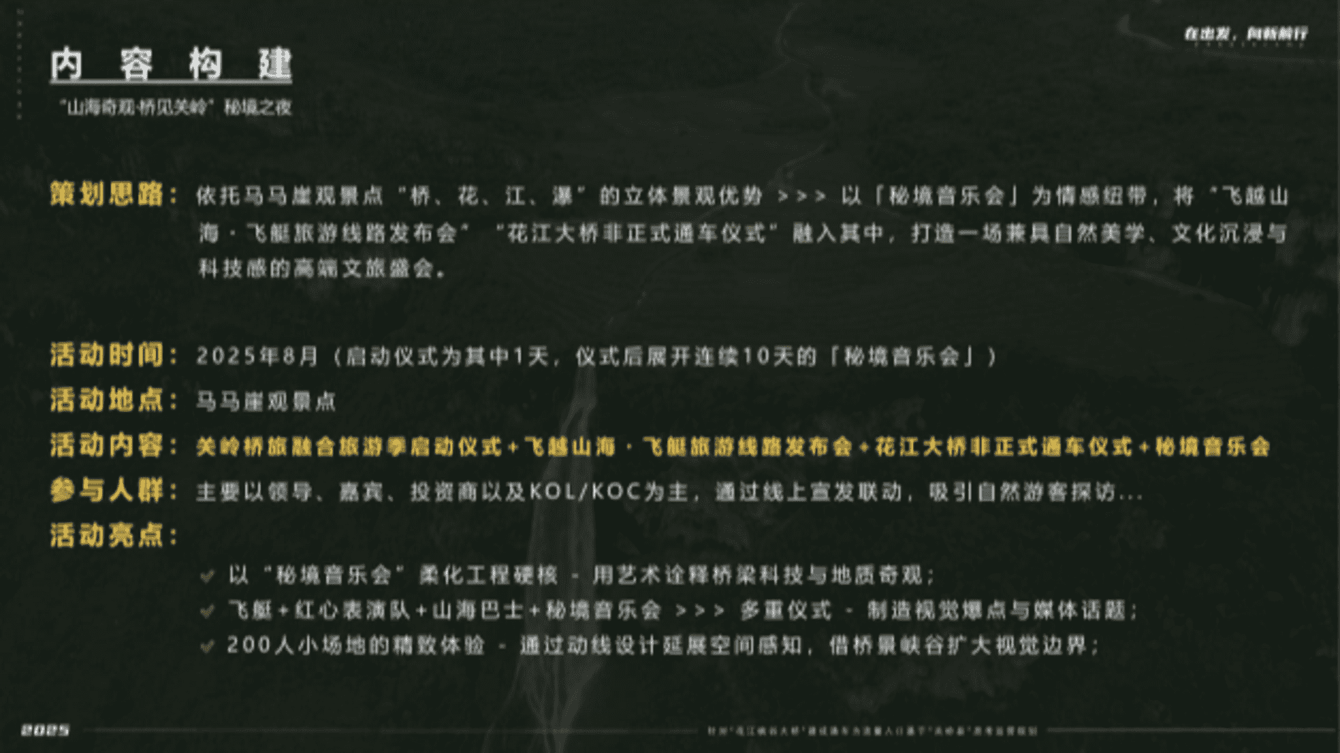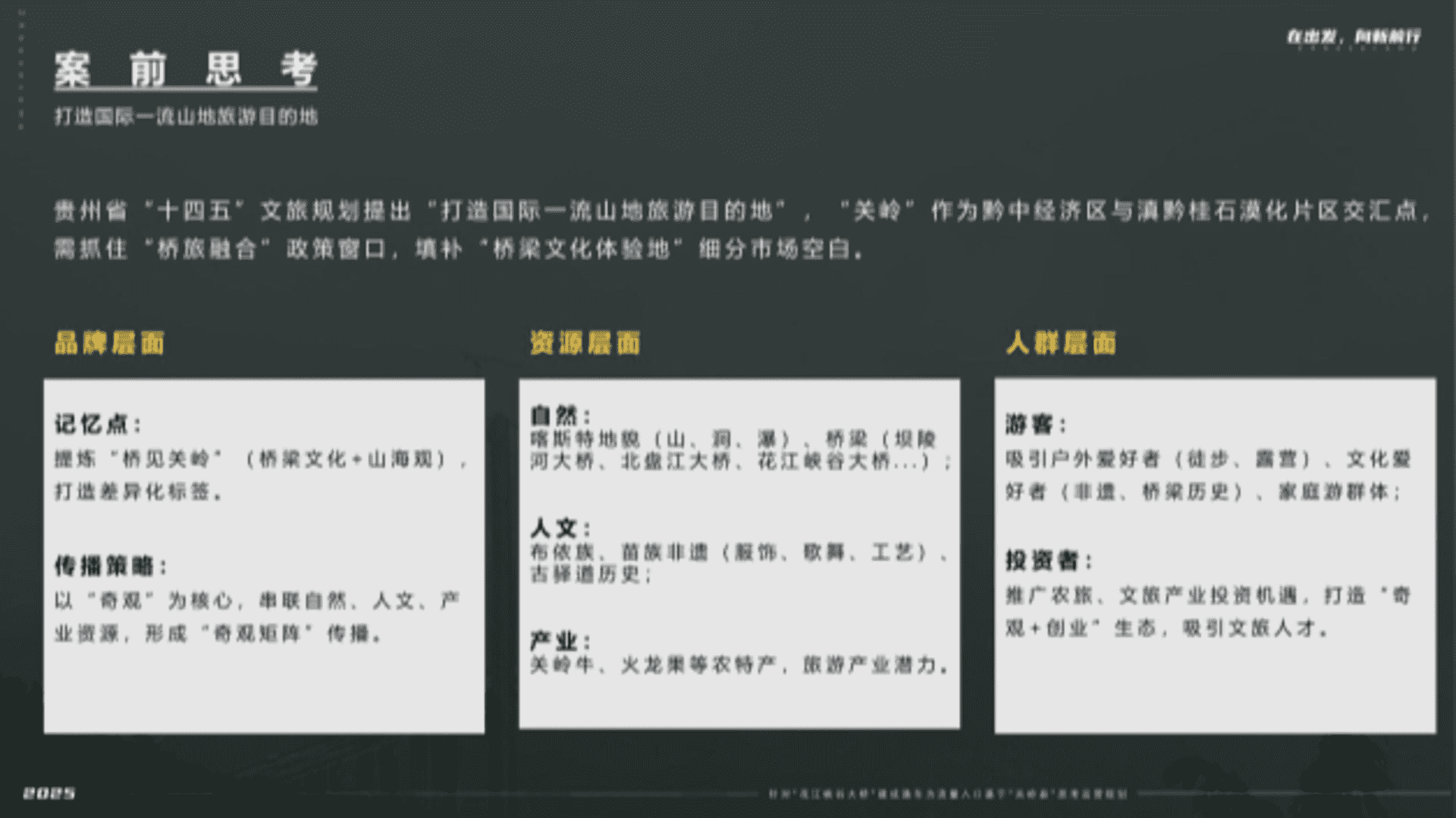 2025贵州景区花江峡谷大桥建成通车为流量入口基于关岭县思考运营规划 2025-12-13 ⑨文旅 8.9w 非VIP用户仅限浏览12张,共27张登录 资源下载此资源下载价格为5元,VIP免费,请先登录 资源下载下载价格5 元VIP免费请先登录 0 0 fanganku.cn方案库策略运营